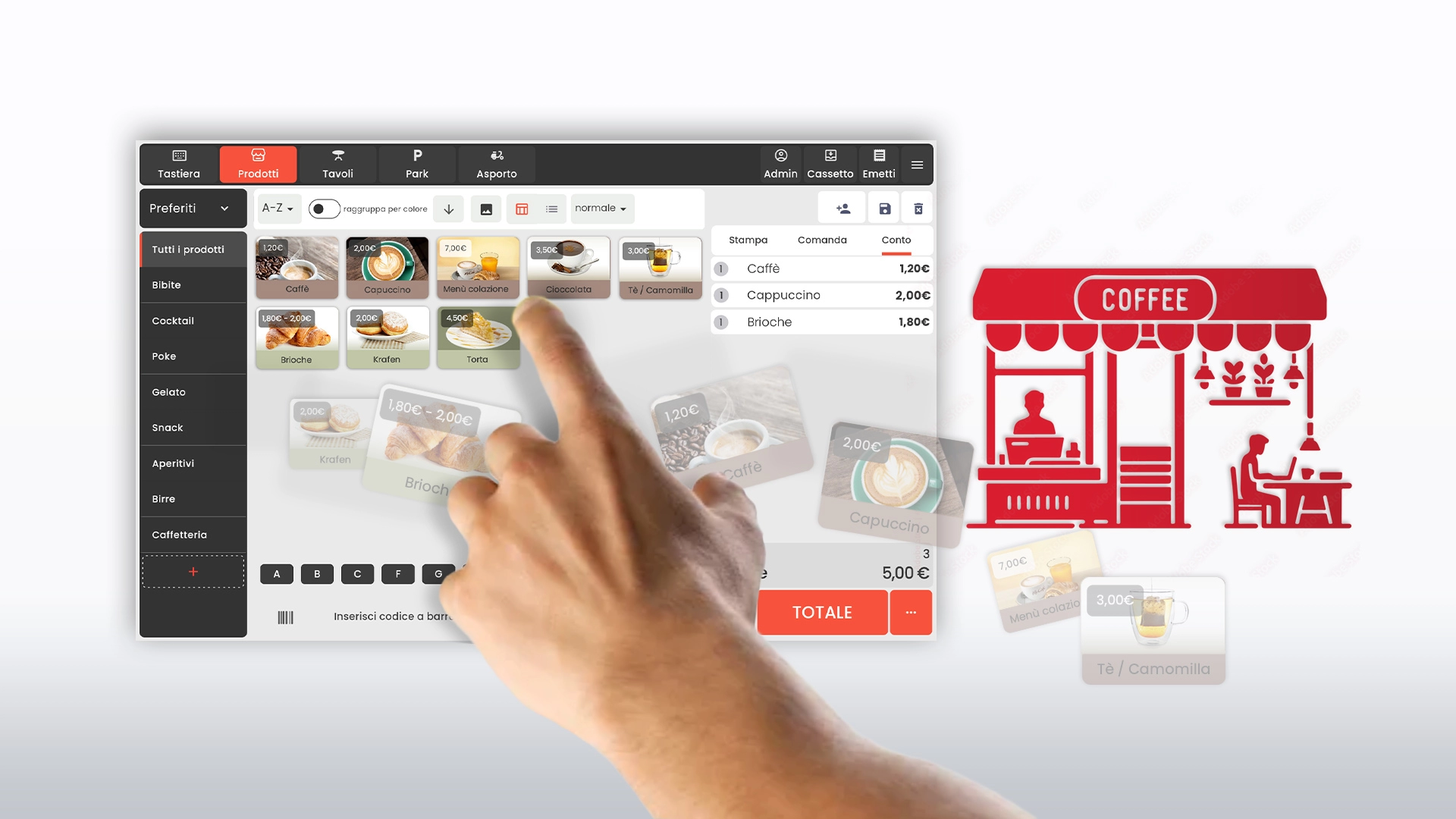 • Gestione ordini d’asporto: Organizzazione ottimale per ordini take-away.